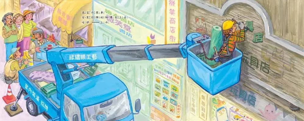 商店街的玩具店招牌老舊了,踩上店裡的梯凳也搆不到,怎麼辦?