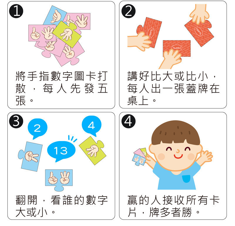 本產品有4種遊戲方法,可支援多人同時遊玩,搭配說明書,孩子可以自行學習玩耍,也可以和家長、兄弟姊妹、同學、朋友們一起遊戲,共享教材教育資源。