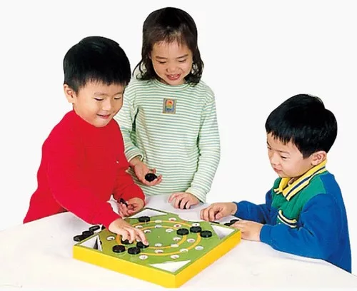 4. 當盤面上的圓蓋子全部拿完時,計算每人拿的圓蓋子數目,最多的人為贏家。