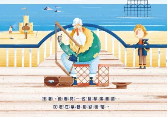 除此之外,整本繪本皆以滿版插畫呈現,結合胡利安的無邊想像,從地鐵車廂過渡到想像世界,再回到現實的家,一頁一頁無處是海洋,卻又無處不是海洋。畫面亮麗同時具節奏感,加上流動般的線條,無不讓讀者感受到其中洋溢的自由與喜悅。